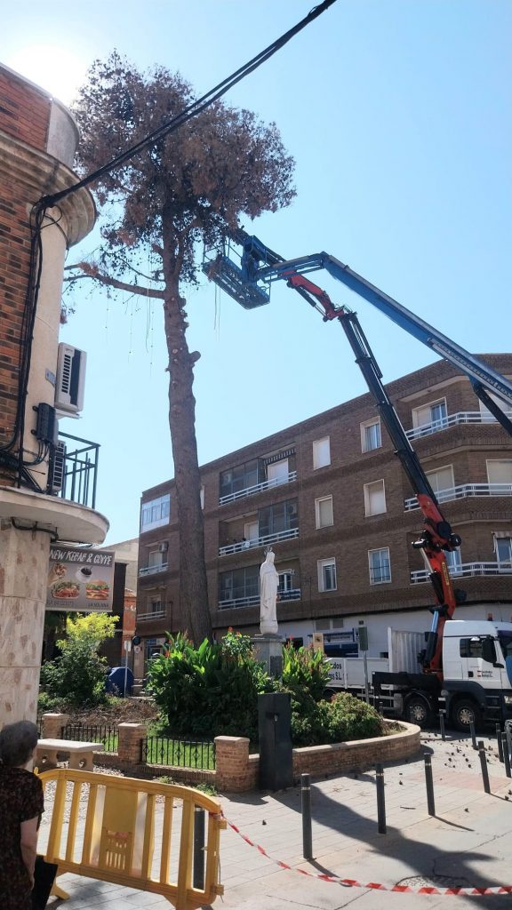 Desde primera hora de la mañana ha comenzado la tala del pino que ocupaba el «jardinillo» del Cristo del Amor. En realidad era la crónica de una «muerte anunciada».