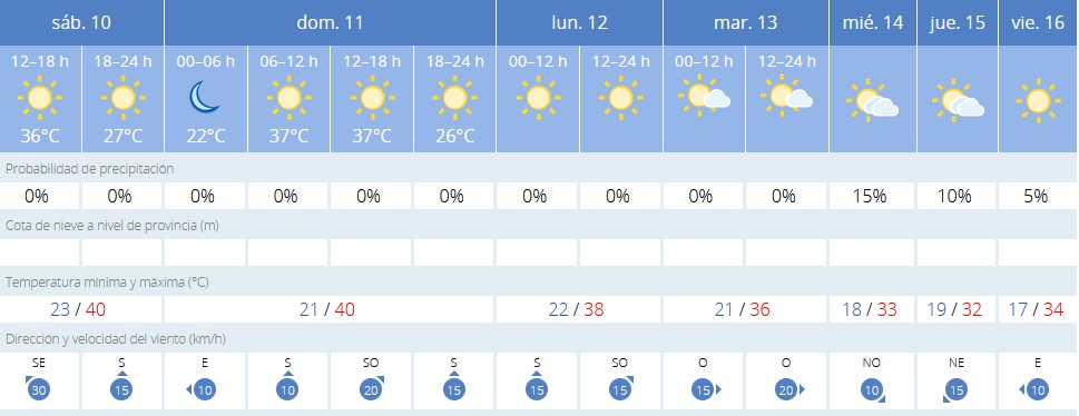 Las previsiones de AEMET apuntan a que la tendencia podría cambiar a partir del lunes. Ese día se iniciará un descenso térmico que, en el caso de La Solana, sería de hasta 8 grados respecto a este sábado. Las mínimas también caerán progresivamente, situándose en 18 grados a mediados de la próxima semana.