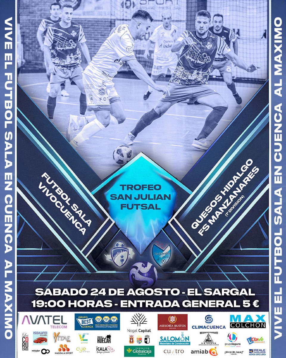 Partidazo este sábado en el Pabellón el Sargal de Cuenca. A partir de las 19:00 horas se enfrentan el FS Vivo Cuenca (Tercera División) y el Manzanares FS de Primera División. El choque, correspondiente al Trofeo San Julian, sirve de preparación para ambos equipos antes del inicio de la temporada.