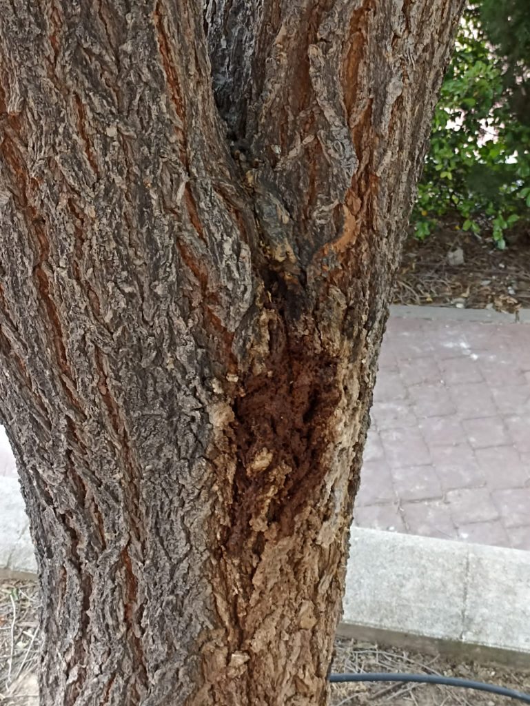 David Peinado: Hay muchos motivos que pueden terminar en una enfermedad de un árbol. Pueden ser los provocados por insectos u hongos (escarabajo picudo en palmeras o el gusano cabezudo en los almendros, el mildeu (viñas) o la grafiosis en los olmos. Por aclarar a los lectores: el picudo rojo y el gusano “cabezudo o cabezón” serían insectos; y el mildeu o la grafiosis es como se conocen las enfermedades provocadas en esas especies arbustivas vid y olmo, por los hongos Plasmopara vitícola y Ophiostoma ulmi respectivamente