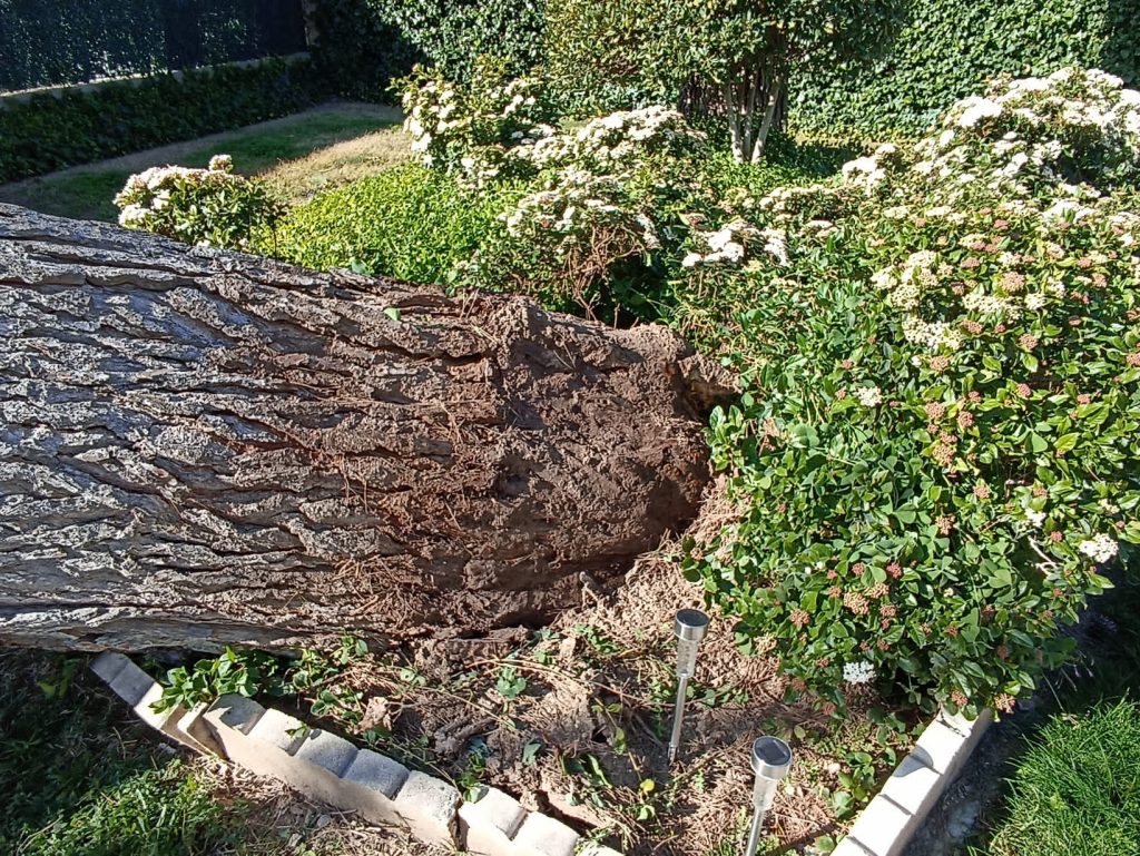 David Peinado: Un árbol seco pierde su flexibilidad. Normalmente -si están sanos- resisten bien el viento, debido a su flexibilidad. Si la pierden, se parten las ramas o la copa. En los pinos, la copa suele crear efecto “vela”. La copa tira del tronco y por ello se tumban. En los olmos, se van partiendo ramas grandes y se queda el tronco principal.