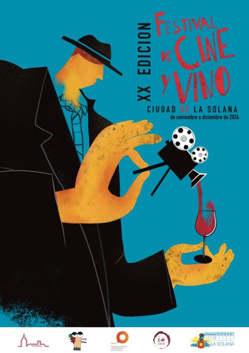 Un personaje vertiendo vino tinto desde un proyector hacia una copa se ha convertido en la imagen oficial del XX Festival de Cine y Vino «Ciudad de La Solana». Un evento para el que apenas faltan dos semanas y que ya ultima los detalles.