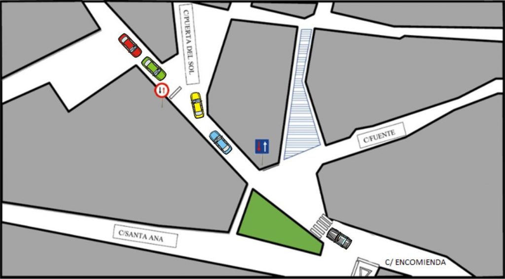 Para mejorar la fluidez del tráfico en la zona más estrecha de la calle Encomienda, a la altura de la Plaza de Santa Ana, se regulará con señalización de prioridad, en la que los vehículos que circulen dirección centro de ciudad tendrán prioridad respecto al sentido contrario.