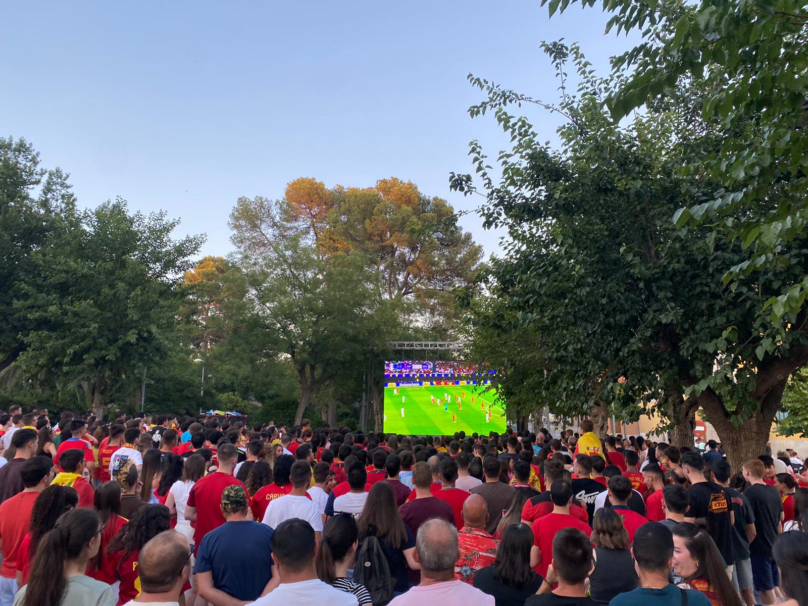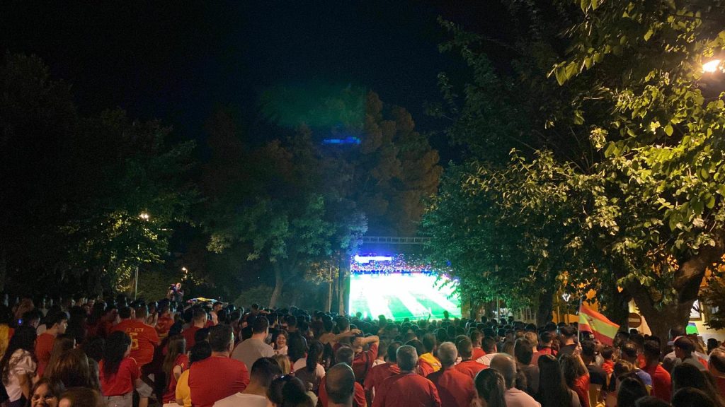 La Solana se echó a la calle para disfrutar con otra noche histórica del fútbol español. Miles de personas acudieron hasta el Parque Municipal para seguir la final del España-Inglaterra que acabó con triunfo de «la roja» por 2-1.