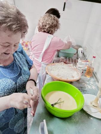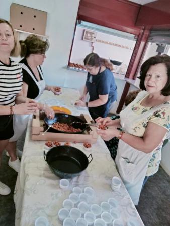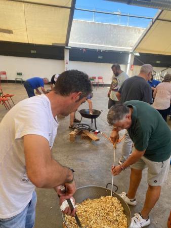 Personas que han colaborado en la elaboración de las migas solidarias en la Caseta Municipal