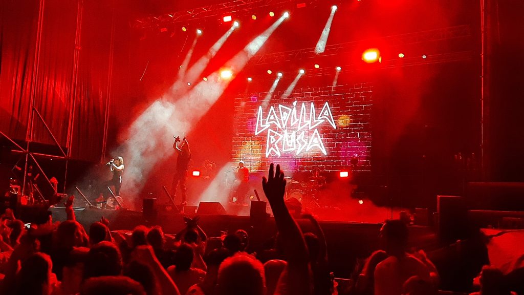 Le siguieron sobre el escenario los barceloneses «Ladillla Rusa«. Un show provocador y festivo donde la techno-rumba se mezcla con una puesta en escena audiovisual disparatada. Una «locura» sobre el escenario con el desparpajo y el chascarrillo constante. Los míticos «Macauly Culkin» o «KIT y los coches del pasado» causaron furor entre el público.
