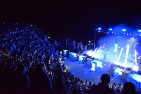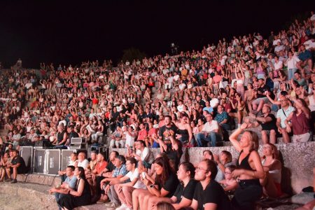 Bajo una ambientación lumínica muy cuidada, la banda hizo vibrar a los espectadores llegados desde todas las partes del mundo. En la cávea del teatro romano, público de todas las edades cantaba, gritaba y saltaba con las canciones que se iban sucediendo en esta mágica noche de agosto.