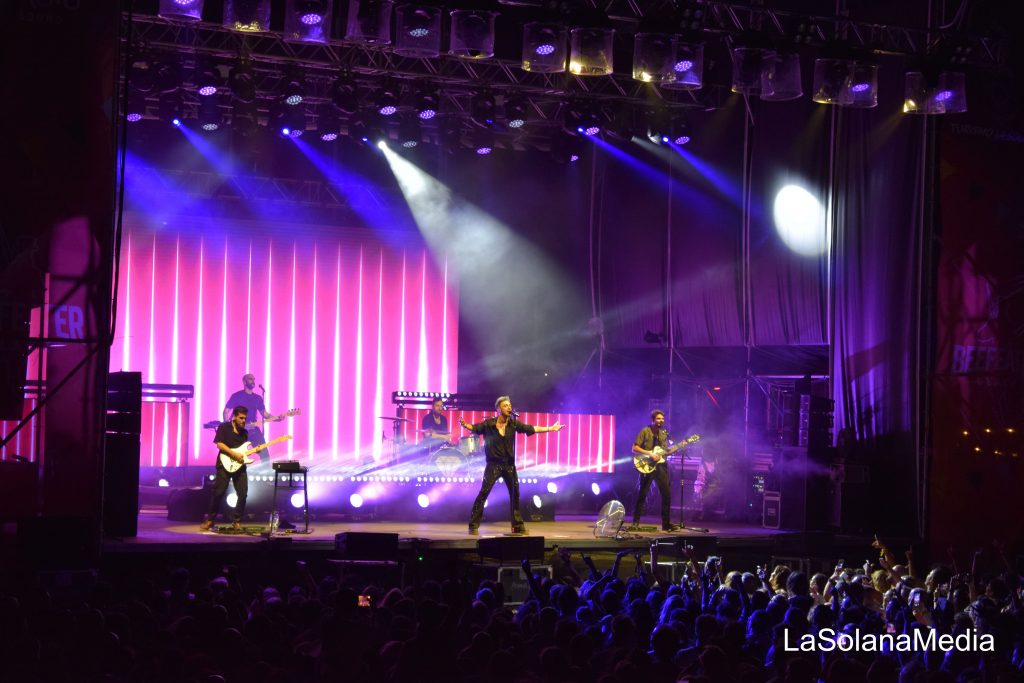 Tras la música de Siloé y con la pausa de la incertidumbre por un viento que empezó a arrancar las telas del escenario, irrumpieron los acordes de Shinova. La banda vizcaína activó la maquinaria de su gira «El Presente». El estreno de los vascos en La Solana no pudo ser mejor. Conexión con el público, puesta en escena soberbia y vozarrón de Gabriel de la Rosa. Un grupo con 17 años de trayectoria que demostró por qué son referentes del indie en España. Momento álgido con «La sonrisa intacta» y subidón con «Te debo una canción» para completar una actuación que encandiló a los seguidores. Señores sobre el escenario para un concierto redondo.