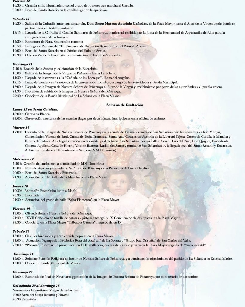 Programa actos de fiestas de la Virgen de Peñarroya 2025 en La Solana