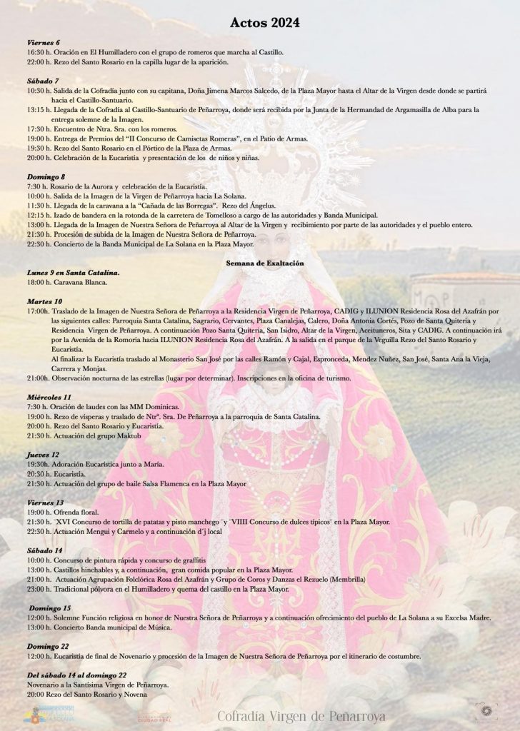 Programa actos Virgen Peñarroya 2024